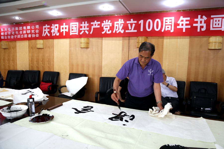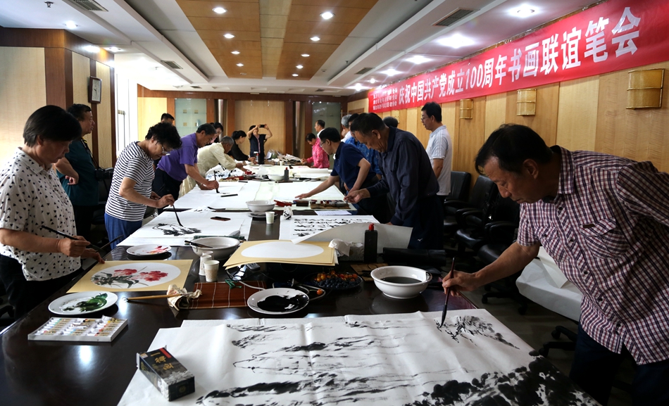 为庆祝中国共产党成立100周年,回顾党的奋斗历程,歌颂美好新时代,助力公司企业文化建设。6月24日,深圳市上茶楼文化发展有限公司、烟台市老年书画研究会、烟台市老干部志愿者协会共同举办“庆祝中国共产党成立100周年联谊书画笔会”。本次活动共有18位县处级退休老干部书画家参加。